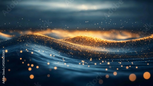Obraz premium A mesmerizing ocean scene with glowing particles and waves.