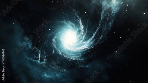 Obraz premium A mesmerizing spiral galaxy illuminated by a bright core, surrounded by...