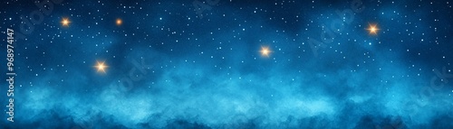 © RiskiDwi, Obraz premium A mesmerizing starry night sky filled with twinkling stars and ethereal blue clouds.