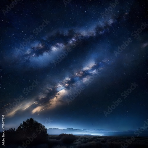 Naklejka premium A mesmerizing starry night with wispy clouds drifting across the sky. - Upscaling by @Badar
