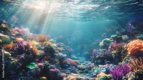 Fototapeta premium A mesmerizing underwater view of the ocean, showcasing the vibrant colors of...