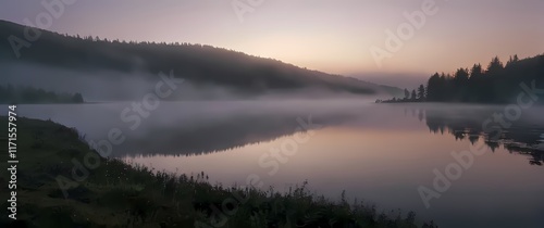 © RobinsonIcious, Fototapeta premium A mesmerizing view of a tranquil lake at dawn evoking calmness and peace