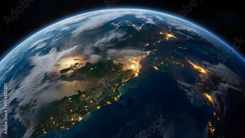 Fototapeta premium A mesmerizing view of Earth from space, showcasing its glowing atmosphere,...