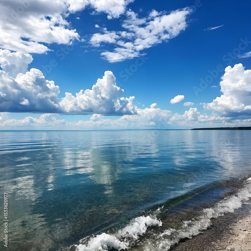 © masyyab, Fototapeta premium "A Mesmerizing View of the Beautiful Sea with Crystal Clear Waves, Blue Horizon, Gentle Breeze, and Peaceful Ocean Serenity Unfolding"