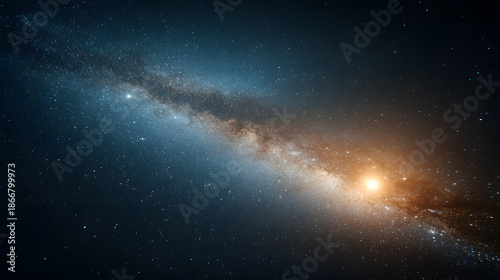 Fototapeta premium A mesmerizing view of the galaxy. It features a galaxy's bright center, stars...