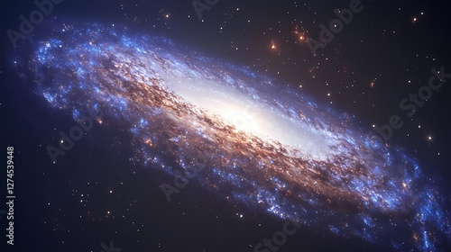 © Thiago, Fototapeta premium A mesmerizing view of the galaxy with sparkling stars against a deep blue backdrop, evoking a sense of wonder and exploration. Galactic Optical Illusions. Illustration