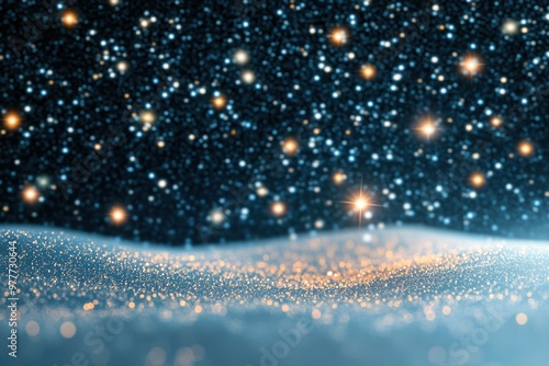 © justjupiter, Obraz premium A mesmerizing view of twinkling stars above a shimmering snow landscape, creating a magical and serene atmosphere.