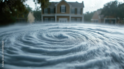 © sommersby, Obraz premium A mesmerizing vortex of mist spirals around a house during an unexplained atmospheric phenomenon, creating an eerie atmosphere