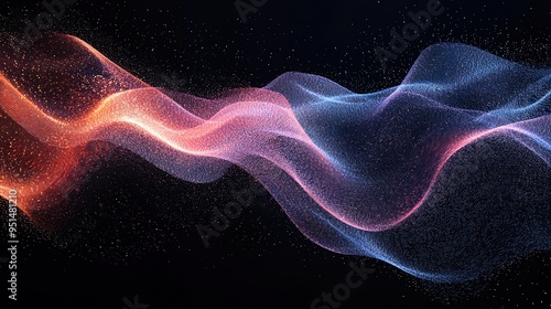 Fototapeta premium A mesmerizing wave of colorful light particles flowing through a dark background, creating a sense of motion and energy.