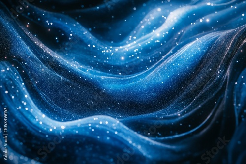 Fototapeta premium A mesmerizing wave of deep blue fabric unfolds. Tiny stars shimmer across its...