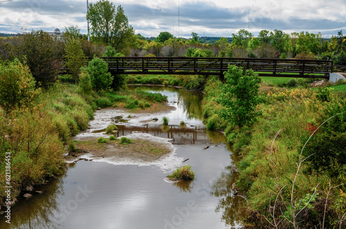 © Barbara, Fototapeta premium A Metal Bridge Across The River At The Local Park