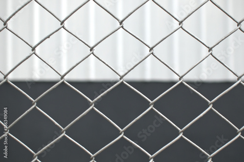 © mrkarlph, Fototapeta premium A metal fence against a white and gray background