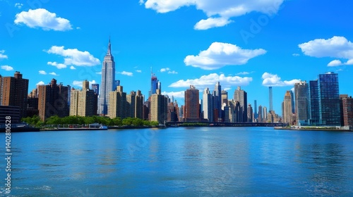 Obraz premium A metropolitan city skyline viewed across a wide body of water
