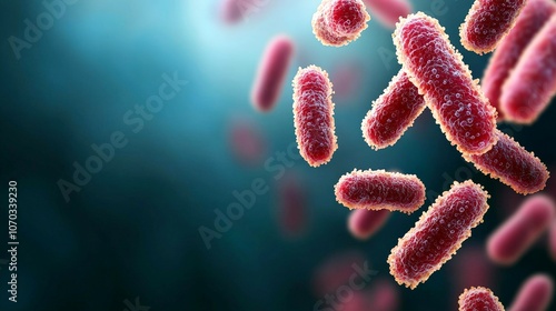 Fototapeta premium A microscopic view of bacteria, showcasing their vibrant red structures...