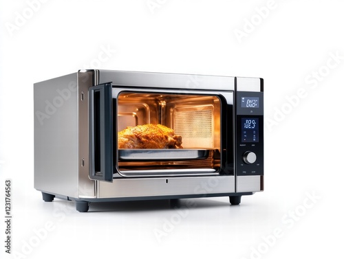 Fototapeta premium A microwave oven with a piece of chicken inside