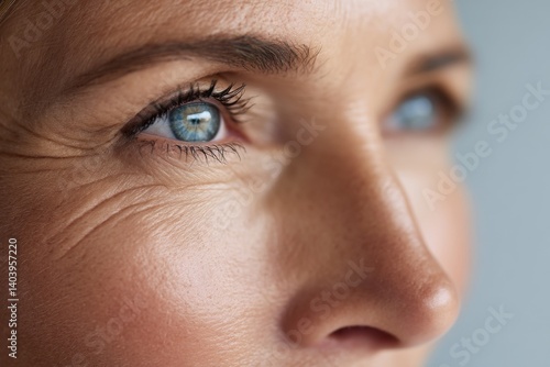 © typepng, Fototapeta premium A middle-aged woman from the 1950s, isolated on a white background, is shown looking at the camera to advertise anti-aging skincare and dry skin care treatments, as well as beauty procedures