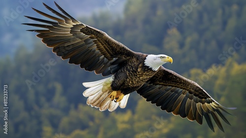Fototapeta premium A mighty bald eagle flying through the sky