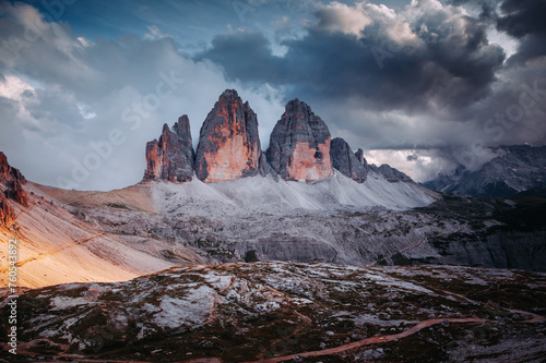 Fototapeta premium A mighty rocky massif Tre Cime di Lavaredo (Drei Zinnen). Italian Alps,...