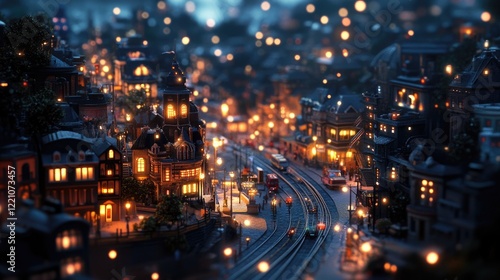 Fototapeta premium A miniature city at night, with streets aglow from vibrant nightlife and...