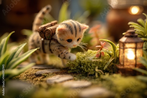 © RizArt, Obraz premium A miniature feline explorer investigating a small plant.