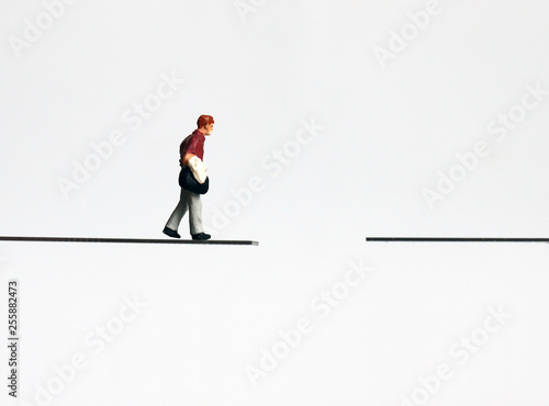 © Hyejin Kang, Obraz premium A miniature man walking with a bag.