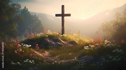 Fototapeta premium A miniature scene depicting the Resurrection, celebrating the Christian Easter Day