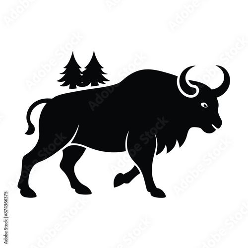 © smpiyal, Fototapeta premium a minimal and simple forest big horn buffalo silhouette on an isolated white background