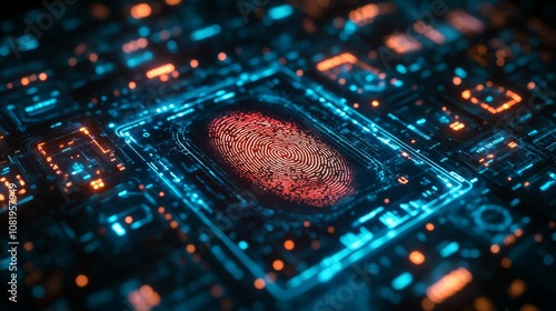 Fototapeta premium A minimal biometric fingerprint is used to record and process statistics and...