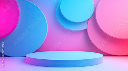 © Mehak, Obraz premium A minimalist abstract background features a simple 3D pedestal for showcasing products.