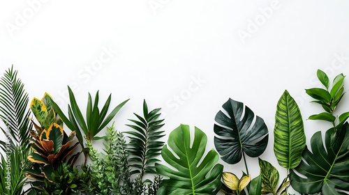 Fototapeta premium A minimalist arrangement of pathway plants with vibrant foliage, placed against a clean white background