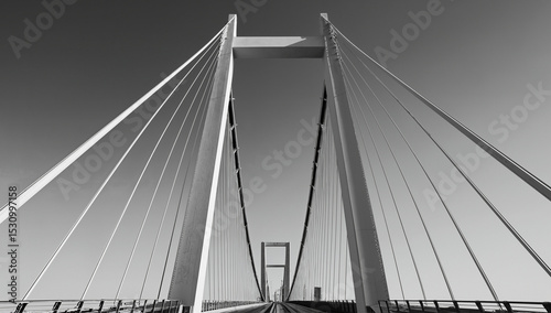 © Ali, Obraz premium A minimalist black and white bridge structure