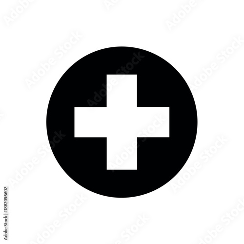 © vector, Fototapeta premium A minimalist black and white icon featuring a white cross on a black circle with a transparent background