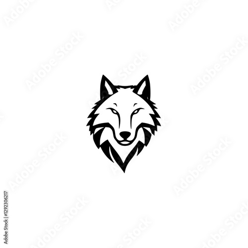 Fototapeta premium A minimalist black and white illustration of a wolf's head in a clean, simple, and geometric design.