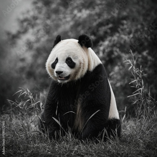 © Khalid, Obraz premium A minimalist black and white panda illustration.