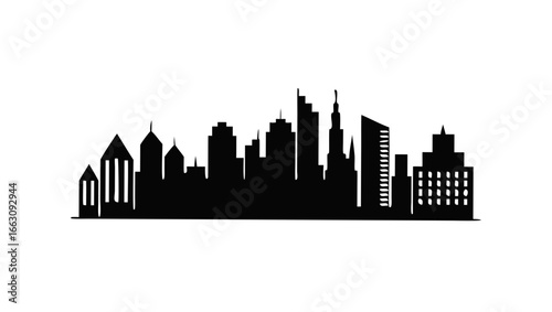 Naklejka premium A minimalist black silhouette of a diverse city skyline featuring various...