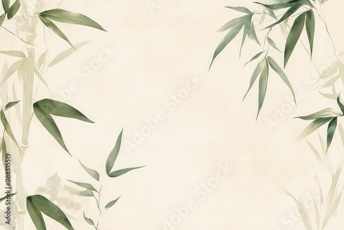 Obraz premium A minimalist Chinese background template showcasing traditional Asian patterns like the Great Wall and bamboo, placed on a soft paper-colored backdrop.