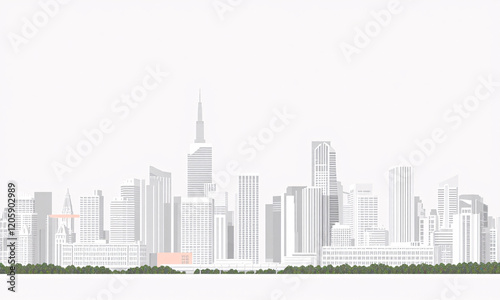 Naklejka premium A minimalist cityscape featuring clean geometric lines of skyscrapers and buildings