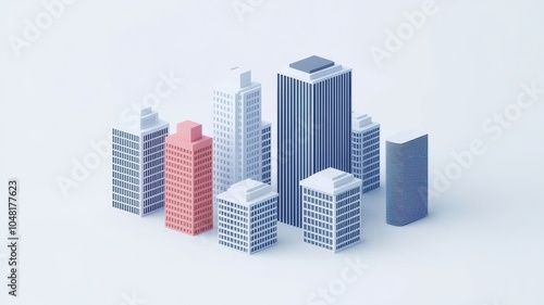 Obraz premium A minimalist cityscape featuring various stylized buildings in pastel colors...