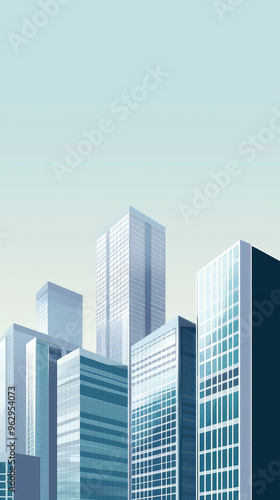 Obraz premium A minimalist cityscape, showcasing sleek, modern skyscrapers against a soft, light blue sky.