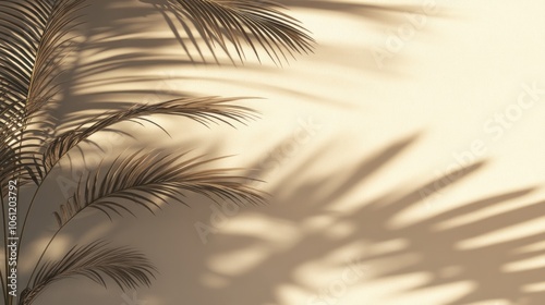 Obraz premium A minimalist composition featuring palm leaves casting shadows on a light wall.