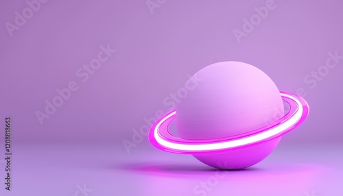 Obraz premium A minimalist design featuring a glowing pink sphere surrounded by a ring on a...