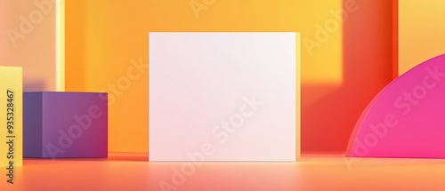 © JK_kyoto, Fototapeta premium A minimalist design featuring colorful geometric shapes with a blank white square space for text or branding.