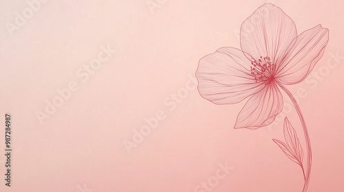 © Kseniya, Naklejka premium A minimalist flower outline in pink on a soft pastel background , minimalist cards without words