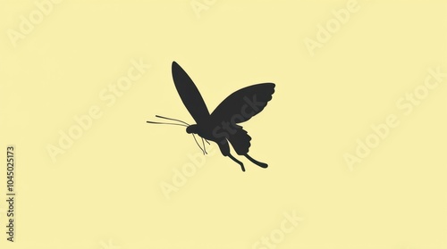 Obraz premium A minimalist illustration of a butterfly in mid-flight, rendered as a single-color silhouette.