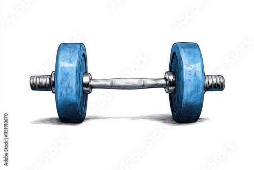 © Thanyarat, Naklejka premium A minimalist illustration of a single dumbbell on a clean, white background, drawn with simple geometric shapes and subtle gradients