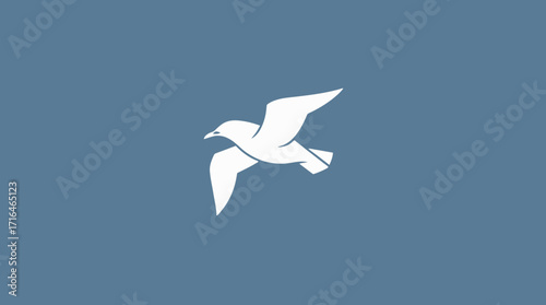 © nevermind, Obraz premium A minimalist illustration of a white seagull soaring against a blue background.