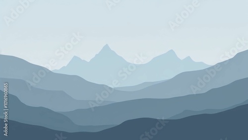 Fototapeta premium A minimalist illustration of layered blue mountains, creating a calm and serene atmosphere , copy space