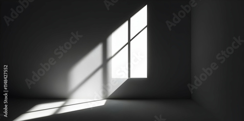 © mbah, Obraz premium A minimalist interior with a window casting shadows on the wall.