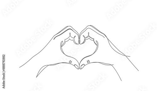 © ARSM D, Fototapeta premium A minimalist line drawing of two hands forming a heart shape with their fingers
