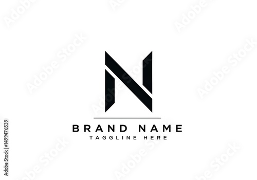© Zeeshan, Naklejka premium A minimalist logo design featuring a stylized letter n with a diagonal line and brand name text below